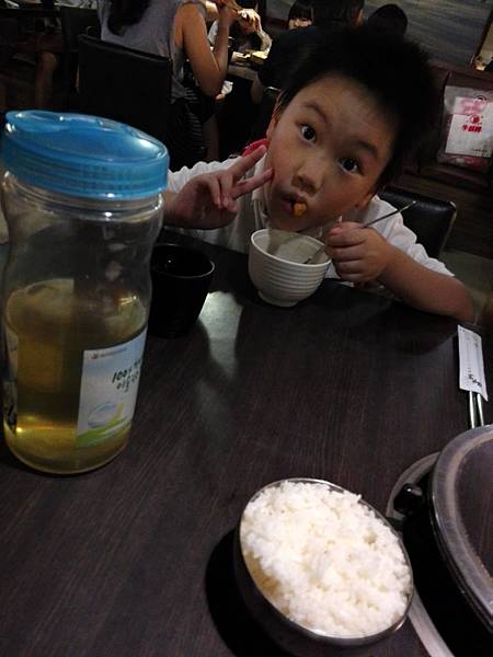 然後因為有點一份小火鍋,所以有一碗白飯(可無限續),另外桌上放一罐無糖麥茶自用