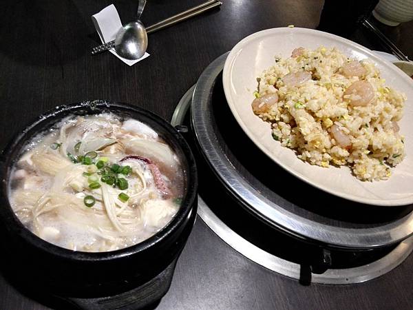 (上圖:小份花枝海鮮嫩豆腐鍋(130元)及蝦仁炒飯(130元))