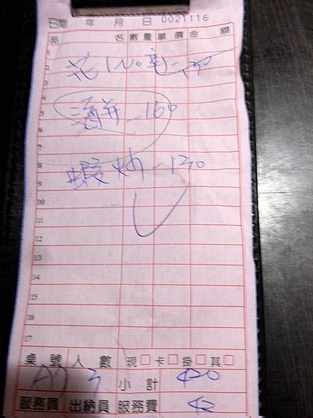 (上圖:這天晚上的帳單,2大人1小人點了3道餐420元+1成服務費(42元)共462元)