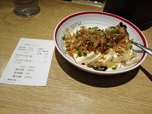 上次點沾麵,這次就點個湯拉麵+60元套餐(選了小魚涼拌豆腐)