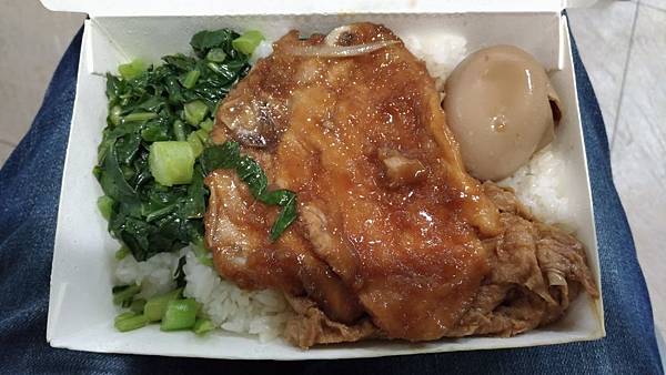 豆皮/炒青菜/滷蛋配上稍硬口感的主菜--排骨,吃起來還是津津有味,