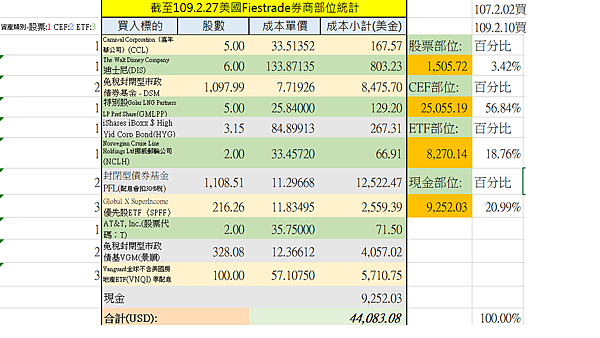截至昨日(109/2/27)美股部位如上圖,入金歷史分2批: