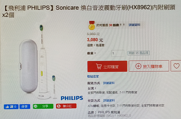 本來是想買飛利浦官網最近有優惠$5200元買一送一的HX6系列,