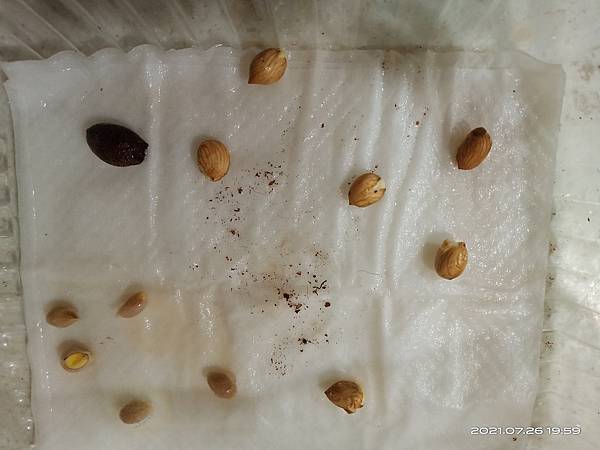 然後放在沾濕的廚房紙巾或濕衛生紙上蓋好等待內核轉綠發芽後撥種