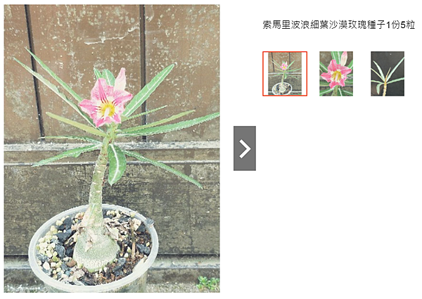 看起來這和一般的沙漠玫瑰相似,不過葉子是波浪細葉狀,花色也單調,或許是花色單一所以較少人想賣吧。